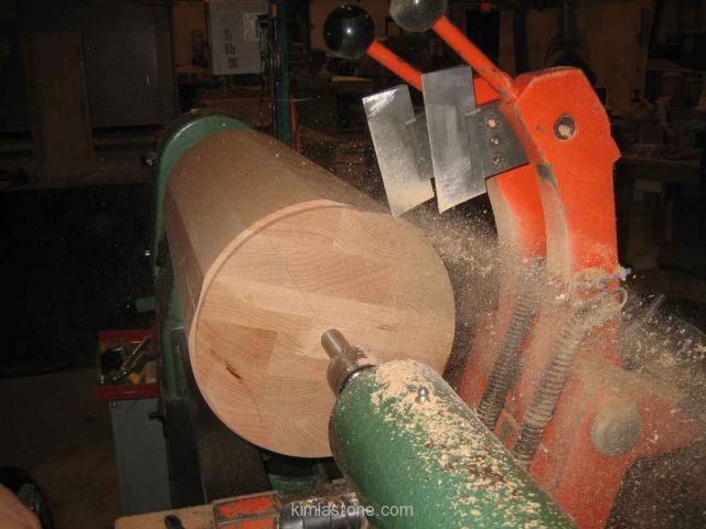 ۳ – بستن چوب بریده شده به دستگاه خراطی و گرد کردن آن و یا اصطلاحاً به صورت نیمه کاره درآوردن آن.