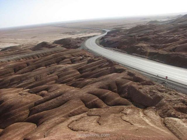 هنگام طی مسافت حدود ۲۰۰ کیلومتری این جاده، انواع بافتهای عجیب و غریب کویری را مشاهده خواهید کرد. در برخی نقاط در دوسویتان تا خط افق حتی بوتهای خار دیده نمیشود و گاهی تپههای سرخ رنگ خاکی نیز میدان دیدتان را میگیرد.