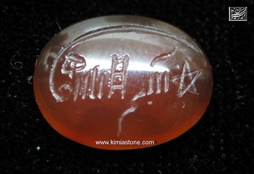 عقیق سرخ یمن، طبیعی و معدنی، رنگ نشده، با حکاکی عمیق شرف الشمس در روز 19 فروزدین92، اندازه سنگ 7 در 13 میلیمتر(از این سنگ در اندازه های مشابه موجود است)