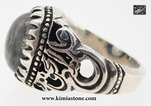 انگشتر نقره 925 مردانه، نگین دُر ( کریستال کوارتز )،حکاکی دستی و نفیس علی مع الحق (خط چپ) پشت نگین،نوشته علی مع الحق بر روی رکاب، اندازه نگین: 13 در 9 میلیمتر، سایز انگشتر 61/62