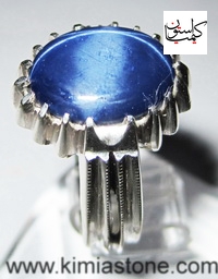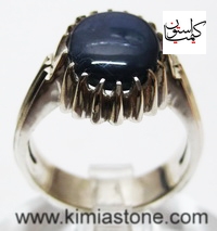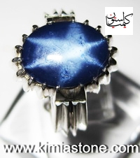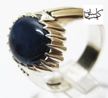 انگشتر نقره دست ساز عیار 925، سنگ یاقوت کبود طبیعی و معدنی استار(ستاره ای)، اندازه سنگ: 11 در 7 میلیمتر ، سایز انگشتر 61/62 ( در اثر برخورد نور مستقیم به یاقوت استار در اثر بازتاب نور ستاره سفید رنگی در سنگ دیده می شود)